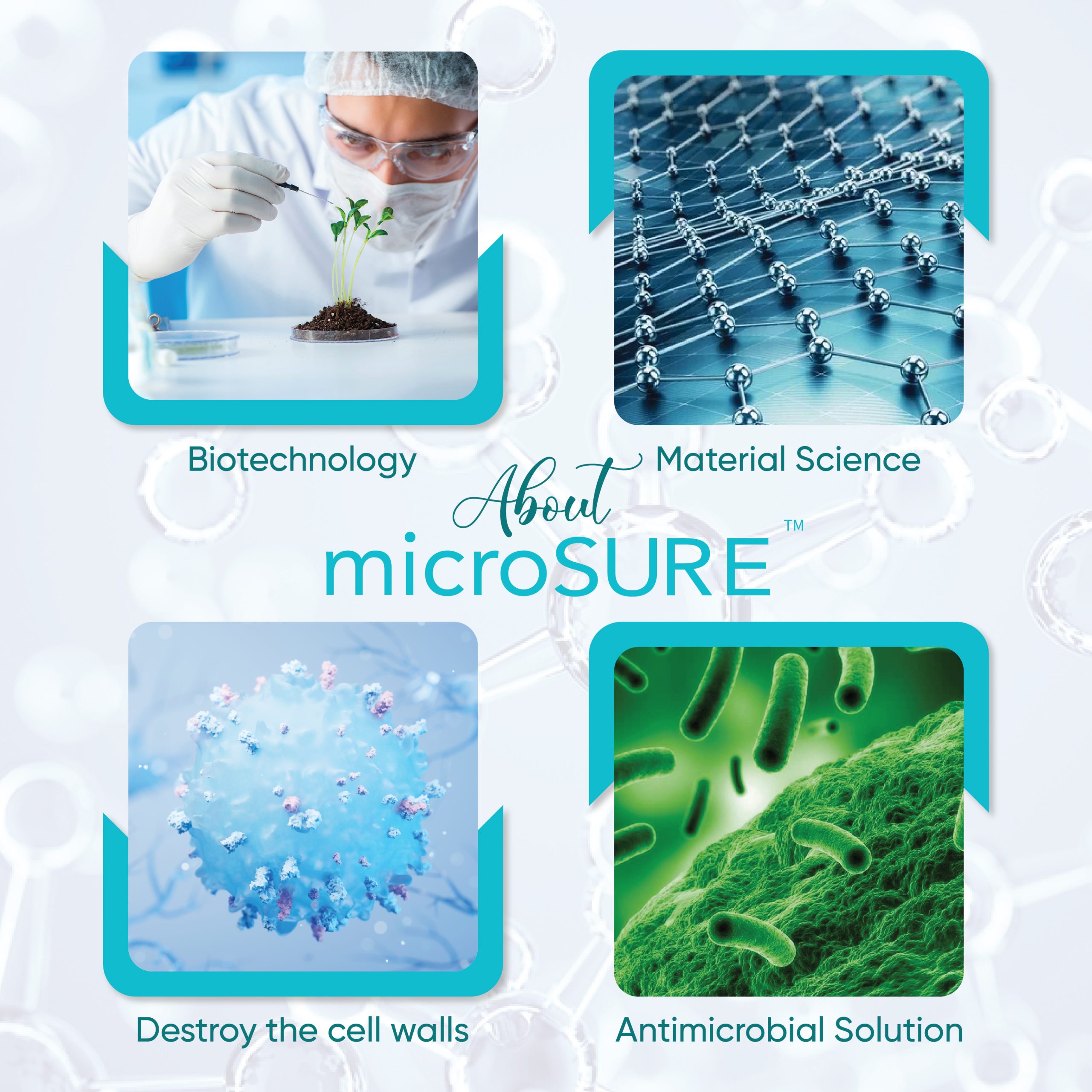 microSURE™ was developed by Dr. Erwin Lo, Neurosurgeon. Dr. Lo collaborated over 15 years ago with a group of experts as it relates to material science and biotechnology, to develop a very unique soluble antimicrobial solution. Through the study and advancements in the field of microscopic technology, Strategia has developed a proprietary technology that allows a treated surface to destroy the cell walls of the bio threat attempting to adhere to the underlying substrate. Their team has developed patented systems of applications and materials that provide a variety of solutions to almost any public healthcare threat.